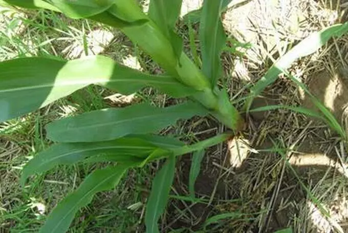 4.拔除空稈由于品種特性或留苗過密,有的是玉米在根際長出1~2個(gè)分蘗,長不出棒子,這些空稈與分蘗均應(yīng)拔除,改善田間通風(fēng)透光條件,減少肥料消耗,利于植株正常生長發(fā)育,促使大穗大粒的形成。